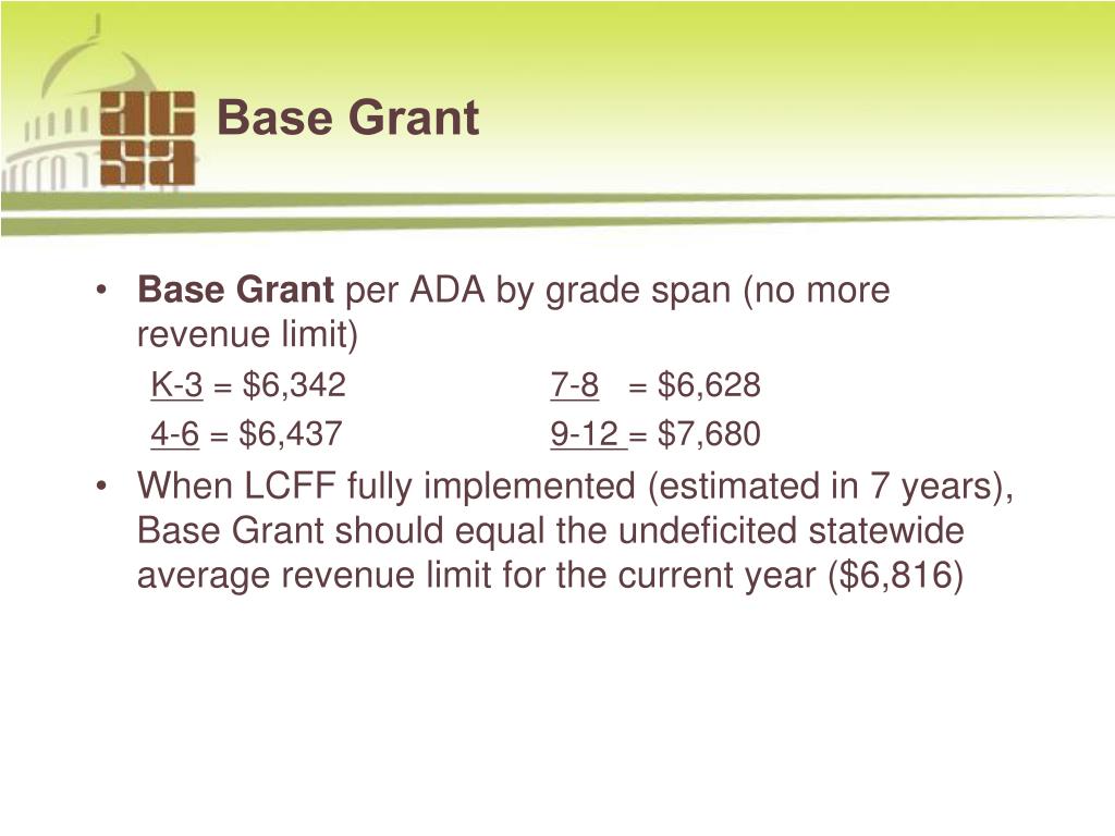 Local Control Funding Formula (LCFF) Basic Grant Supplemental (weighted) Grant Concentration (weighted) Grant Augmentations to the Base Grant Add-ons to formula Separately funded programs Hold-harmless and transition 877.954.4357 • www.sia-us.com 3