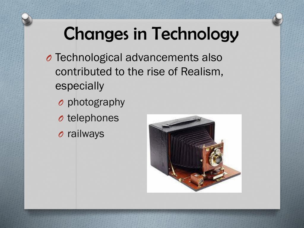 Changes in Technology • Technological advancements also contributed to the rise of Realism, especially • photography • telephones • railways