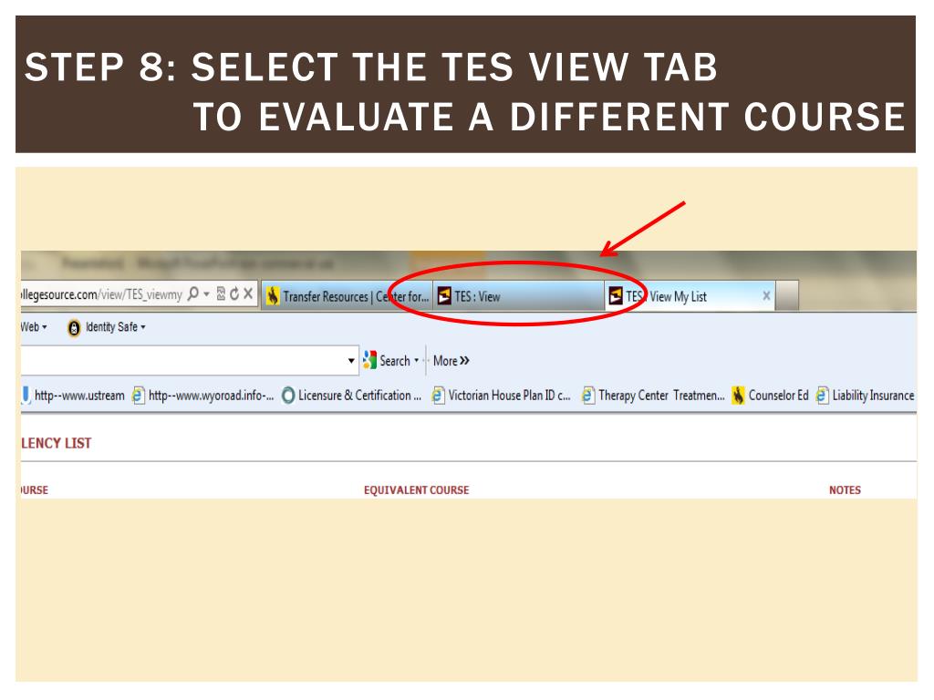 Repeat steps 6-9 UNTIL YOU HAVEselected and evaluated all courses you plan to transfer. Step 10: Select the next course You want to evaluate