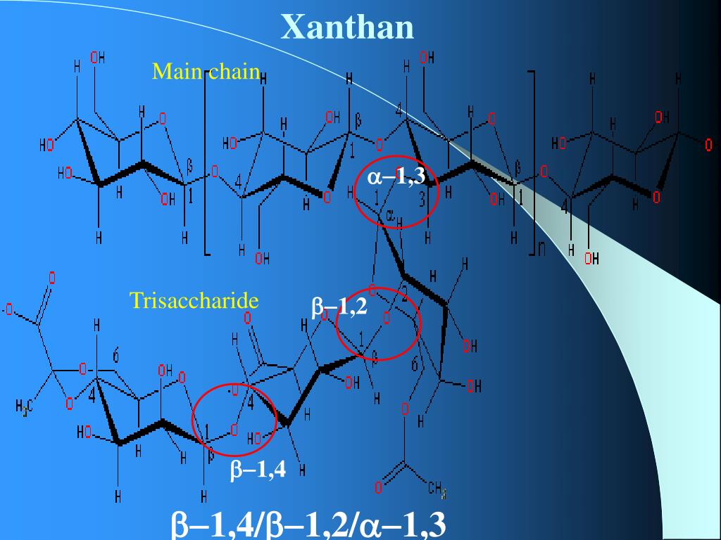 Xanthan Main chain -1,3 Trisaccharide -1,2 -1,4 -1,4/-1,2/-1,3