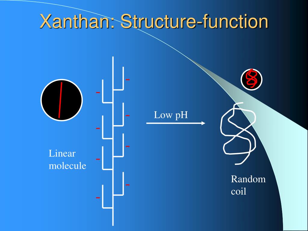 - - - - - - - - Xanthan: Structure-function Low pH Linear molecule Random coil