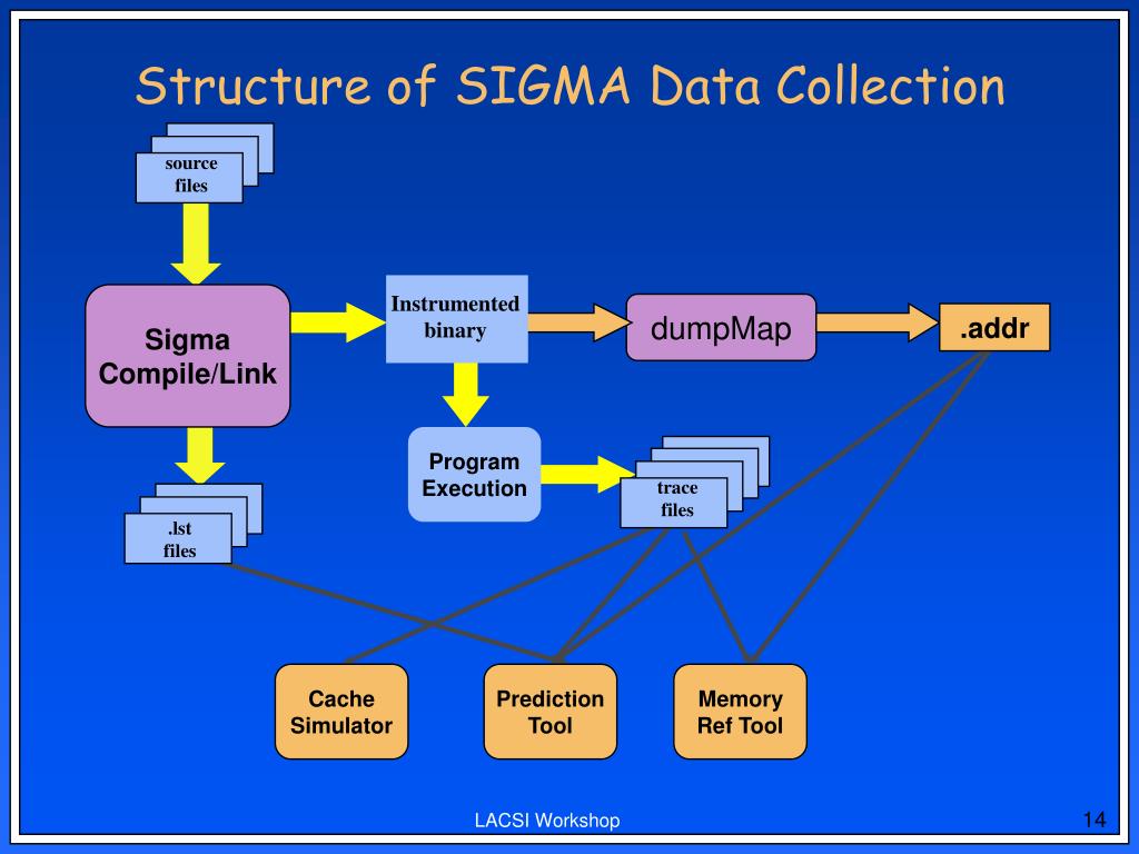 dumpMap .addr ProgramExecution trace files Instrumentedbinary CacheSimulator PredictionTool MemoryRef Tool Structure of SIGMA Data Collection source files SigmaCompile/Link .lst files