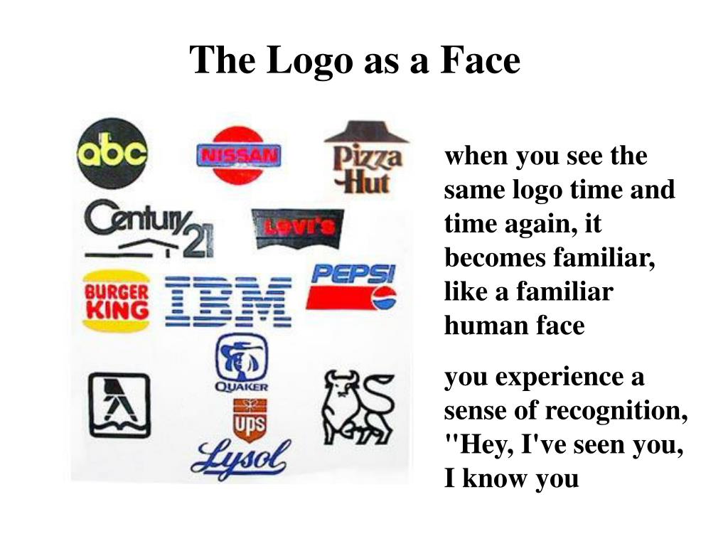 The Logo as a Face when you see the same logo time and time again, it becomes familiar, like a familiar human face you experience a sense of recognition, "Hey, I've seen you, I know you