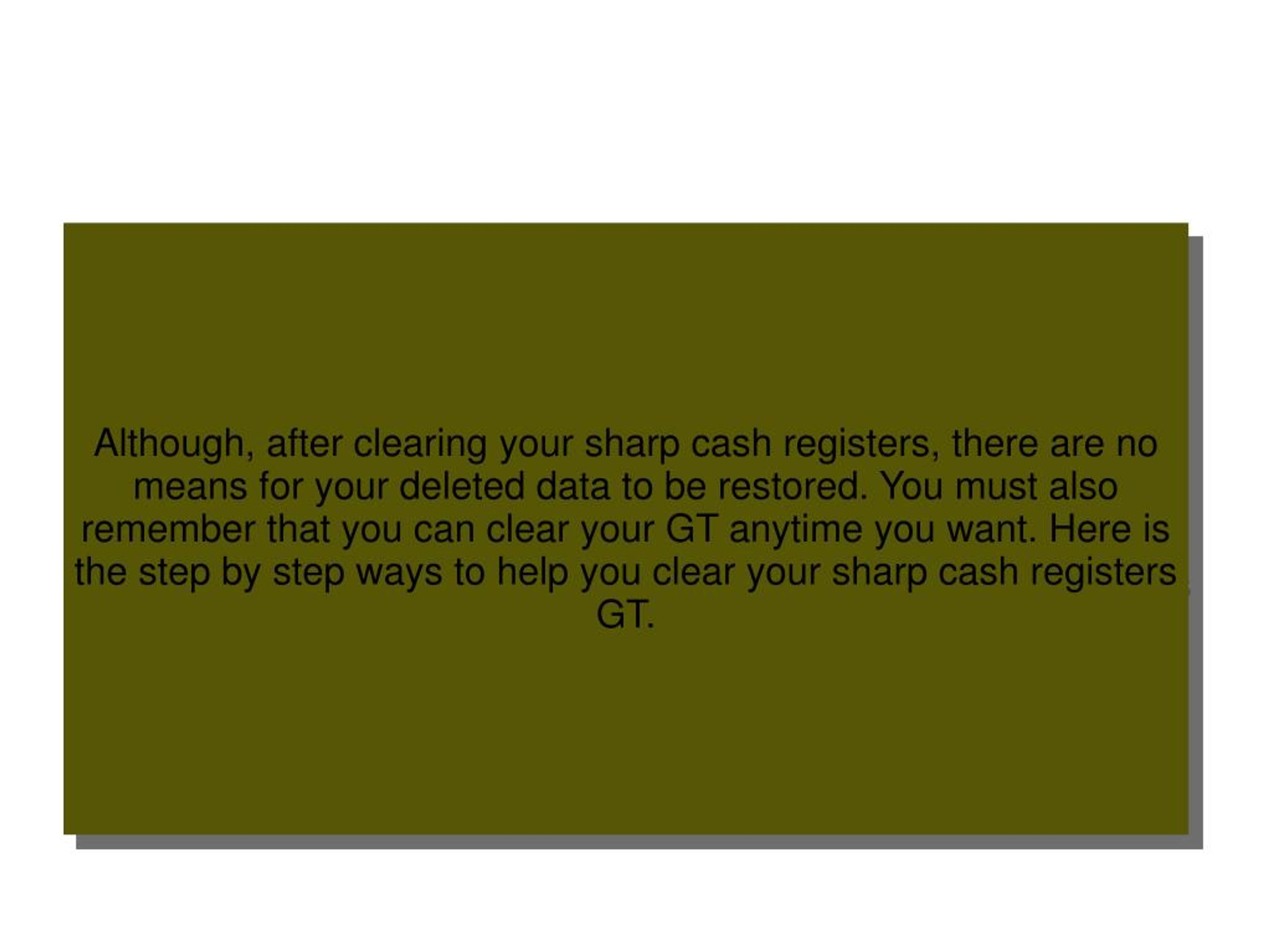 Although, after clearing your sharp cash registers, there are no means for your deleted data to be restored. You must also remember that you can clear your GT anytime you want. Here is the step by step ways to help you clear your sharp cash registers GT.