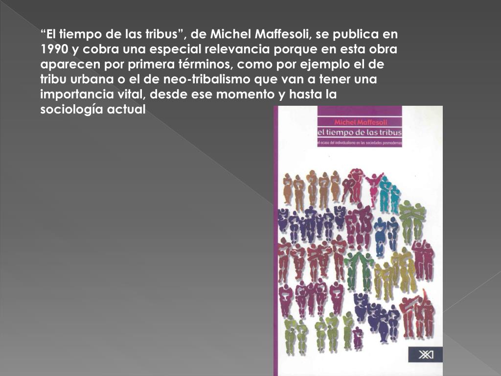 “El tiempo de las tribus”, de Michel Maffesoli, se publica en 1990 y cobra una especial relevancia porque en esta obra aparecen por primera términos, como por ejemplo el de tribu urbana o el de neo-tribalismo que van a tener una importancia vital, desde ese momento y hasta la sociología actual