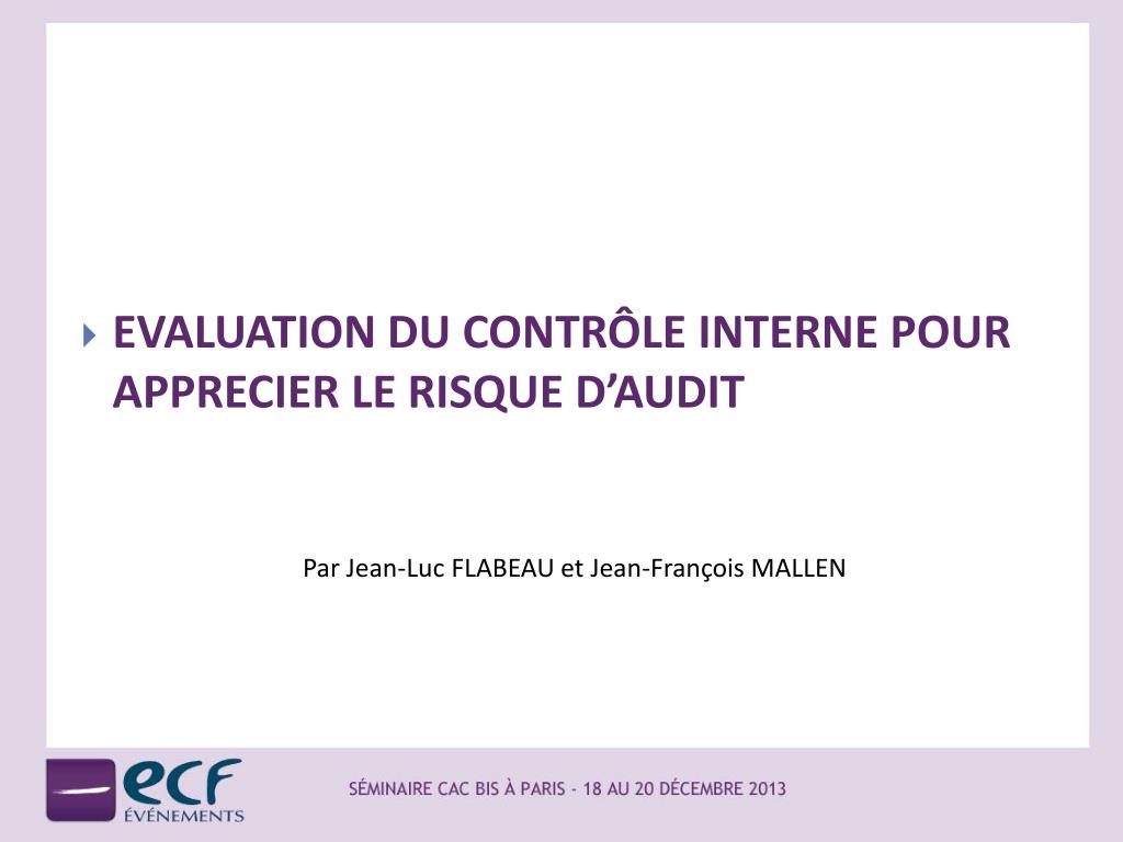 EVALUATION DU CONTRÔLE INTERNE POUR APPRECIER LE RISQUE D’AUDIT . Par Jean-Luc FLABEAU et Jean-François MALLEN. EVALUATION DU CONTRÔLE INTERNE POUR APPRECIER LE RISQUE D’AUDIT – SOMMAIRE (1/2). Pourquoi une approche par les risques ? L’approche par les risques en résumé