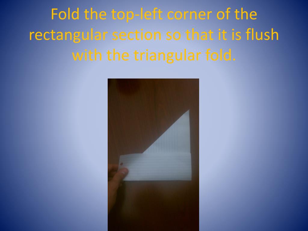 Fold the top-left corner of the rectangular section so that it is flush with the triangular fold.