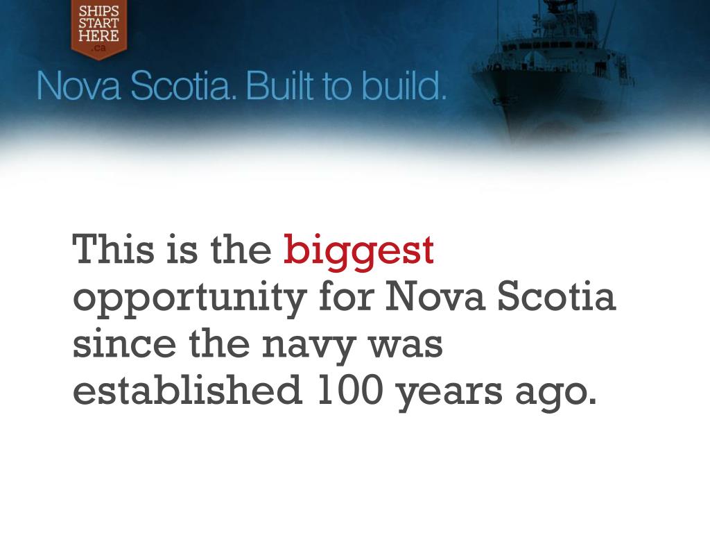 This is the biggest opportunity for Nova Scotia since the navy was established 100 years ago.