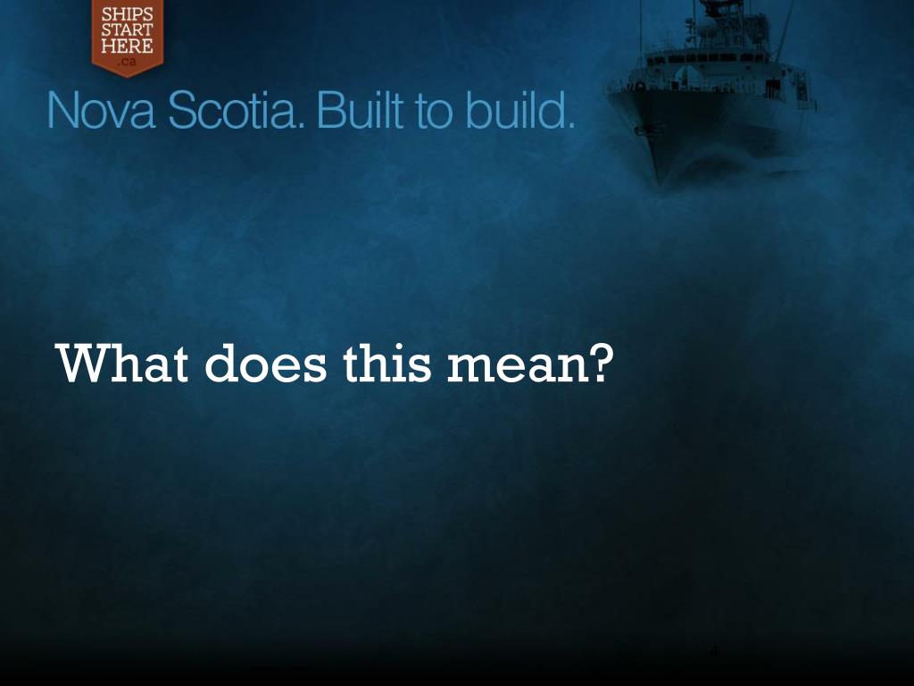 The National Shipbuilding Procurement Strategy May 2011. This is the biggest opportunity for Nova Scotia since the navy was established 100 years ago. What is it ?