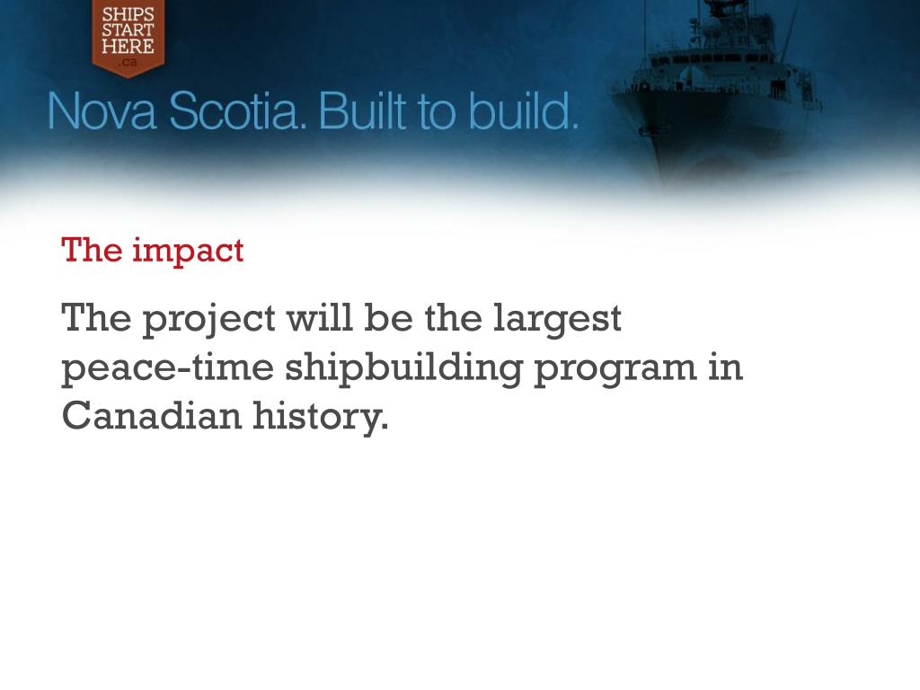 The impact The project will be the largest peace-time shipbuilding program in Canadian history.