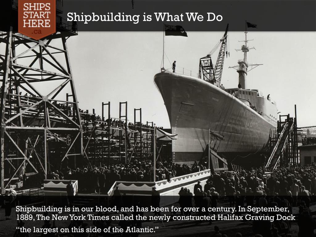 Shipbuilding is What We Do • Shipbuilding is in our blood, and has been for over a century. In September, 1889, The New York Times called the newly constructed Halifax Graving Dock “the largest on this side of the Atlantic.”
