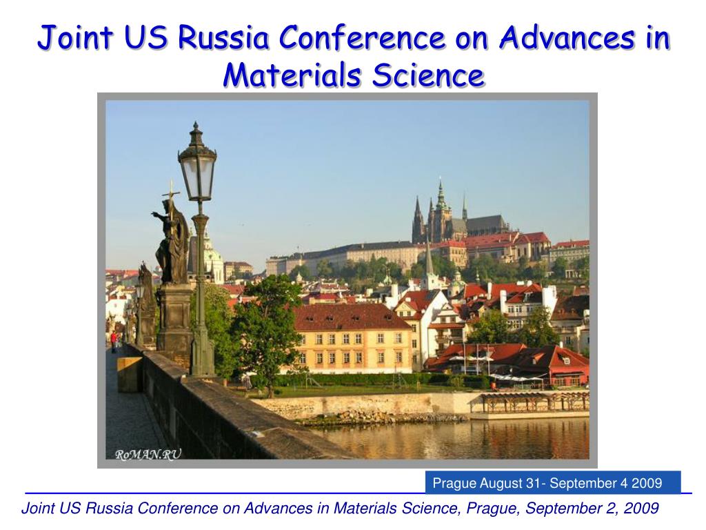Joint US Russia Conference on Advances in Materials Science Prague August 31- September 4 2009