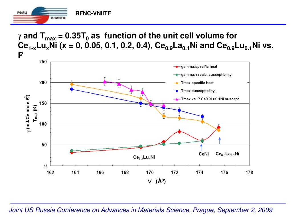 From these results we conclude that • both chemical and external pressure increase Ce valence and hybridization between Ce f-electrons and conduction band electrons • independent spectroscopic experiments are required • Kondo physics dominates the behavior of CeNi under variation of the chemical and, perhaps, external pressure. • Single-site Kondo approximation seems to provide good description of the observed behavior