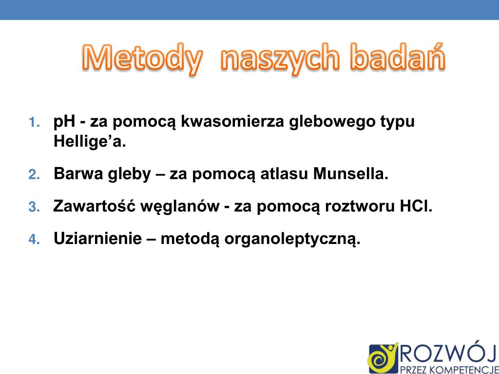 Metody naszych badań • pH - za pomocą kwasomierza glebowego typu Hellige’a. • Barwa gleby – za pomocą atlasu Munsella. • Zawartość węglanów - za pomocą roztworu HCl. • Uziarnienie – metodą organoleptyczną.