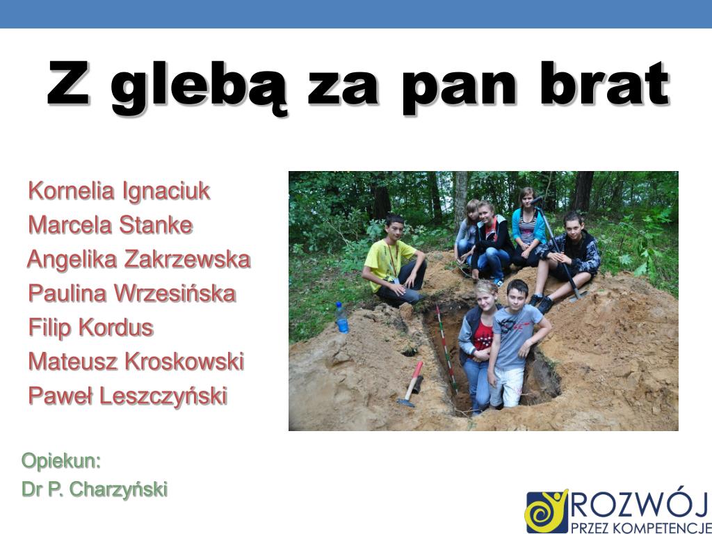 Kornelia Ignaciuk Marcela Stanke Angelika Zakrzewska Paulina Wrzesińska Filip Kordus Mateusz Kroskowski Paweł Leszczyński Opiekun: Dr P. Charzyński Z glebą za pan brat