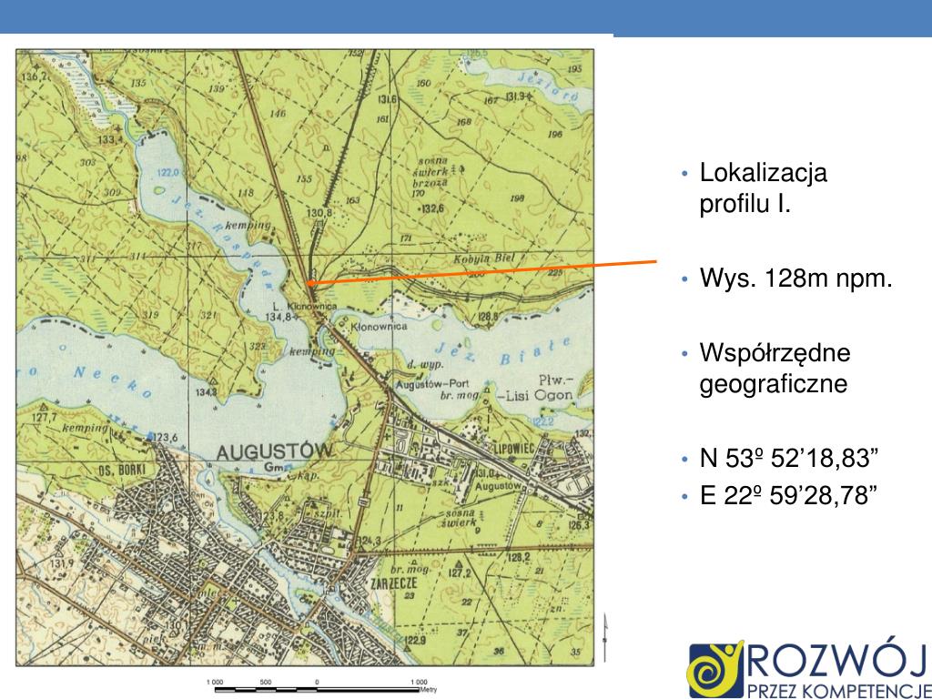 Lokalizacja profilu I. Wys. 128m npm. Współrzędne geograficzne N 53º 52’18,83” E 22º 59’28,78”