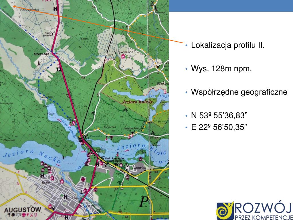 Lokalizacja profilu II. • Wys. 128m npm. • Współrzędne geograficzne • N 53º 55’36,83” • E 22º 56’50,35”