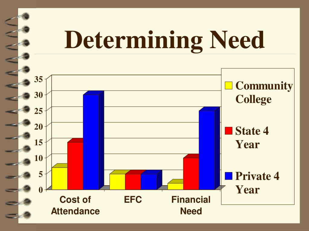 Financial Need *Varies depending on the cost of the school *Compare how and how much of your financial need has been met at each school