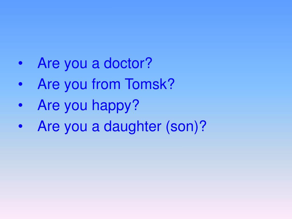 Are you a doctor? Are you from Tomsk? Are you happy? Are you a daughter (son)?