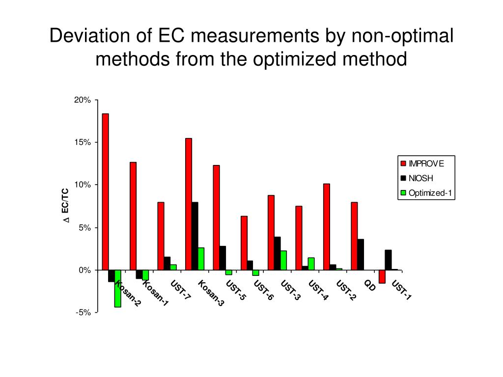 Deviation of EC measurements by non-optimal methods from the optimized method