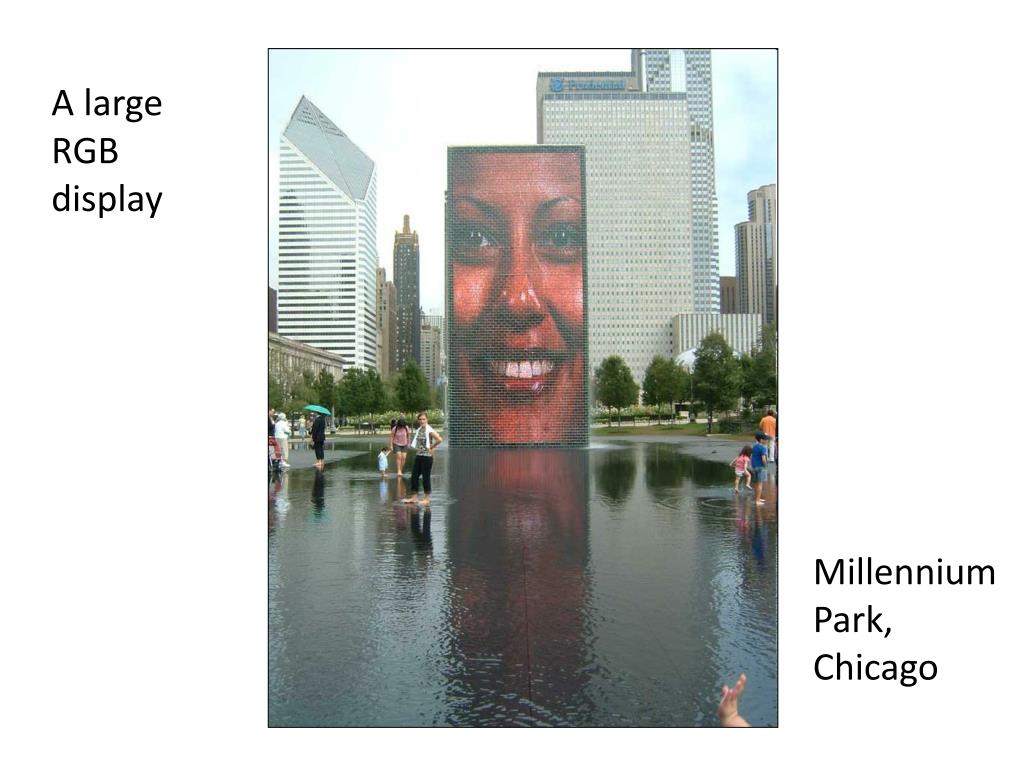 Combine three primary colors for each pixel Intensities of each color can range from 0 - 255