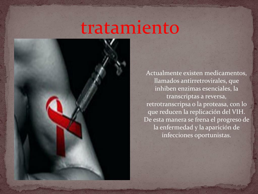 tratamiento Actualmente existen medicamentos, llamados antirretrovirales, que inhiben enzimas esenciales, la transcriptas a reversa, retrotranscripsa o la proteasa, con lo que reducen la replicación del VIH. De esta manera se frena el progreso de la enfermedad y la aparición de infecciones oportunistas.