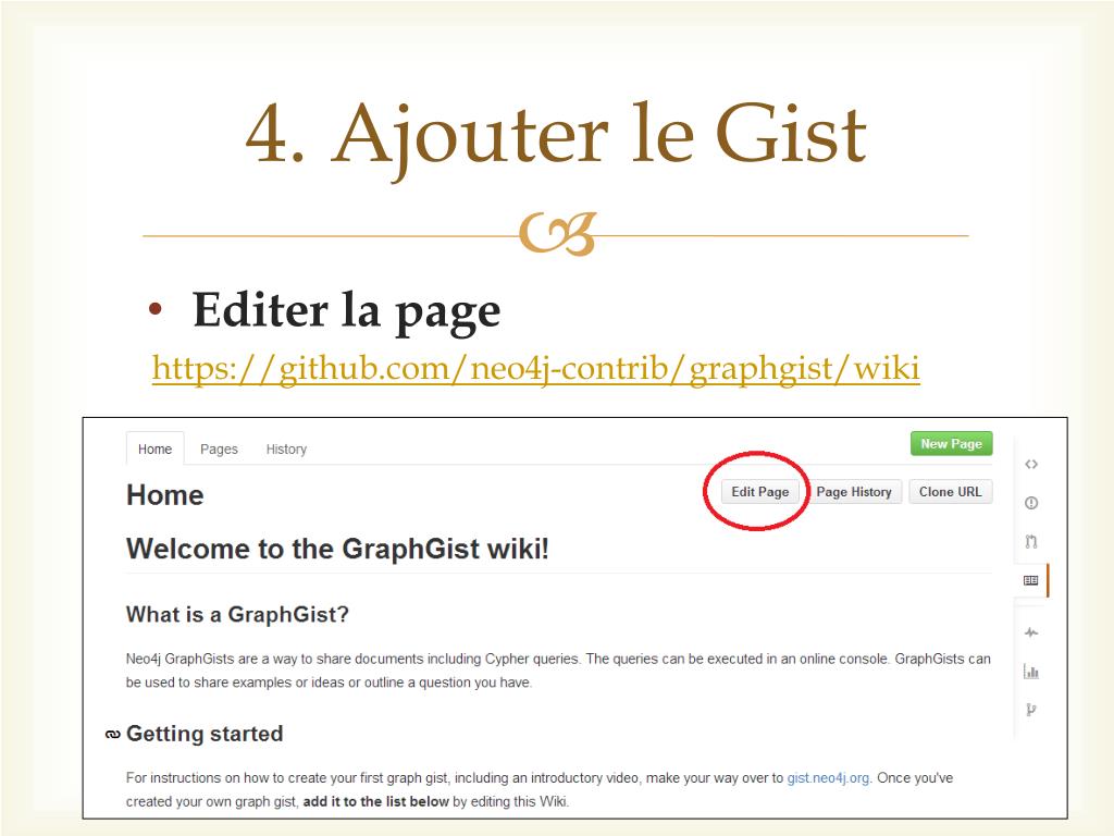4. Ajouter le Gist • Editer la page https://github.com/neo4j-contrib/graphgist/wiki