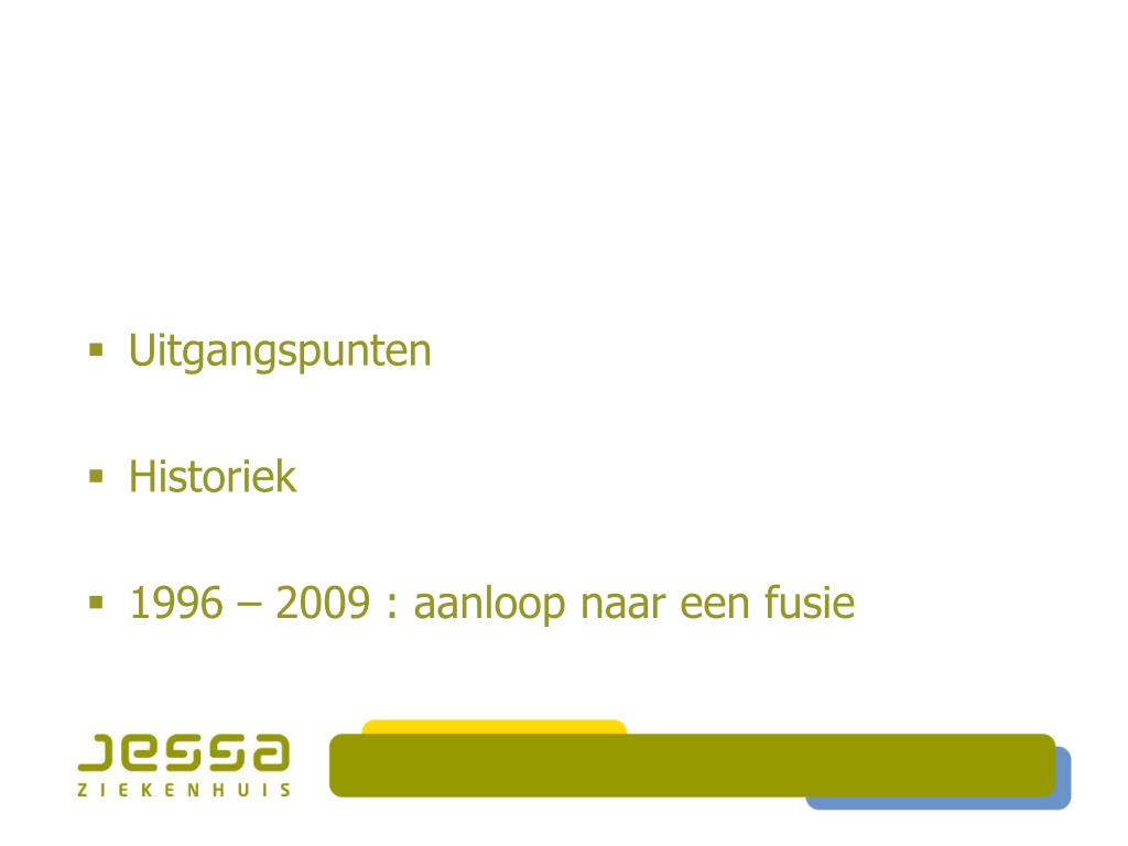 Uitgangspunten • Historiek • 1996 – 2009 : aanloop naar een fusie