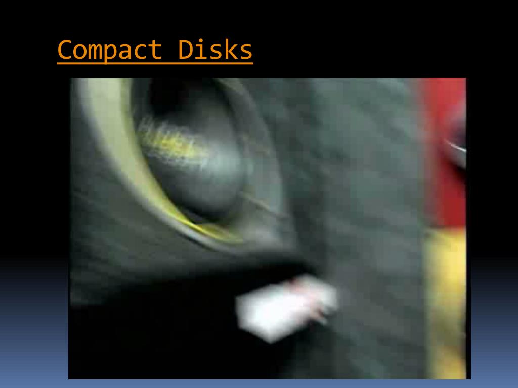 Compact Disks Are The Pits • Bottom of the disk is coated with transparent material • CD’s are read by a laser from the bottom
