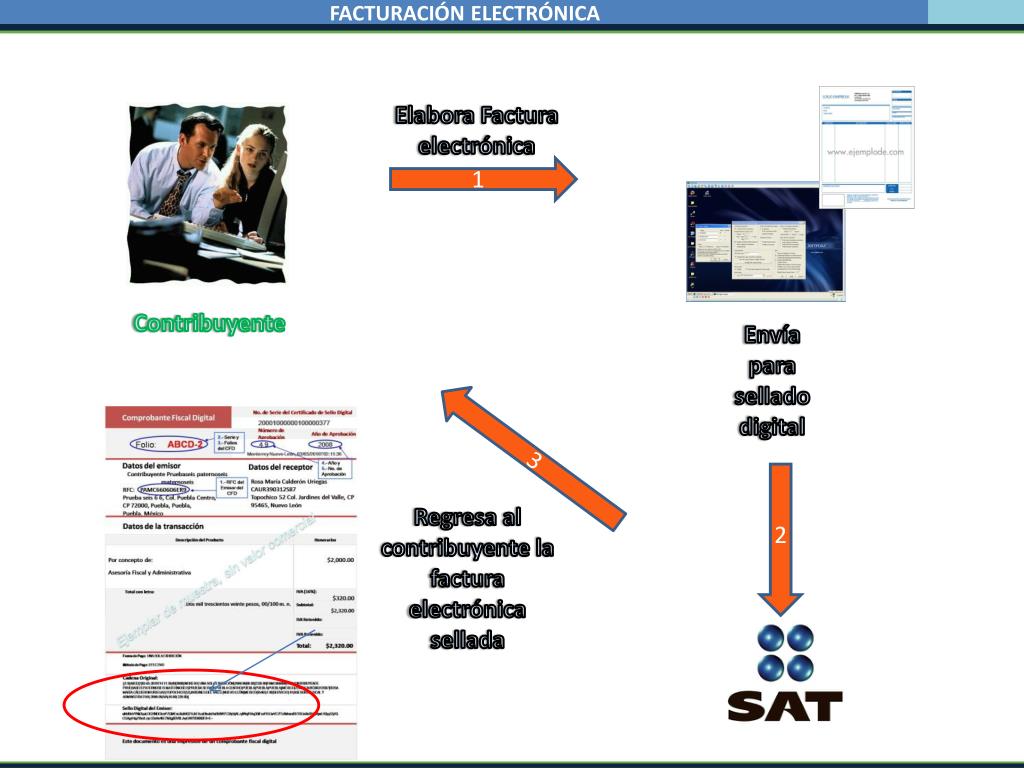 FACTURACIÓN ELECTRÓNICA Elabora Factura electrónica 1 Contribuyente Envía para sellado digital 3 2 Regresa al contribuyente la factura electrónica sellada