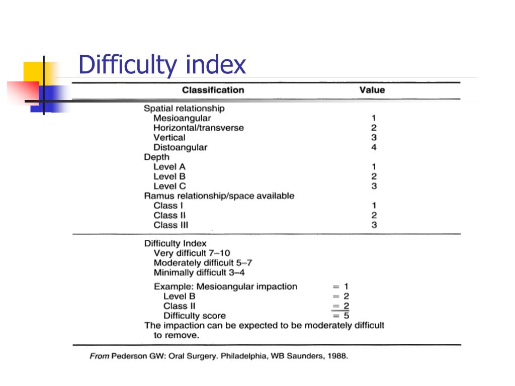 Other factors of difficulty • Contact with Mandibular second molar • Cautious with Horizontal and distoangular extraction • Safe application of elevators • Check for large restorations, crowns, endodontic treatment on second molars