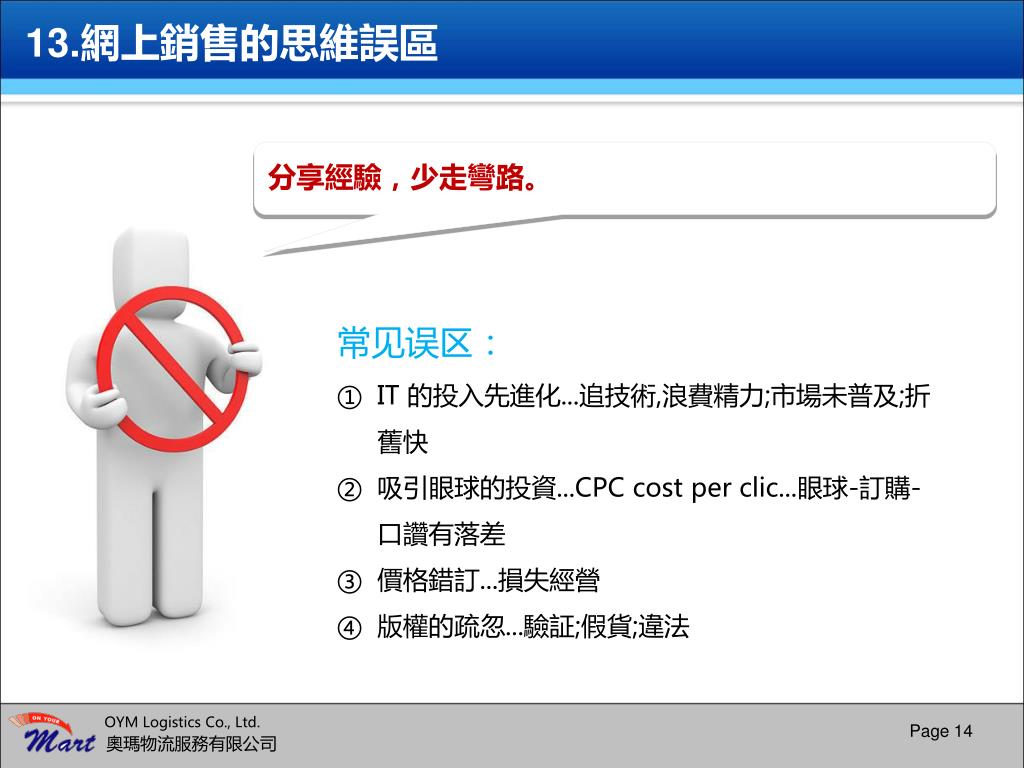 12.網上銷售的思維重點 Page 13 OYM Logistics Co., Ltd. 奧瑪物流服務有限公司