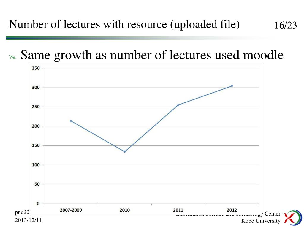Number of lectures with resource (uploaded file) • Same growth as number of lectures used moodle pnc2013