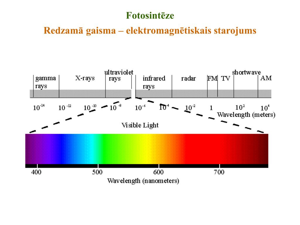 Fotosintēze Redzamā gaisma – elektromagnētiskais starojums