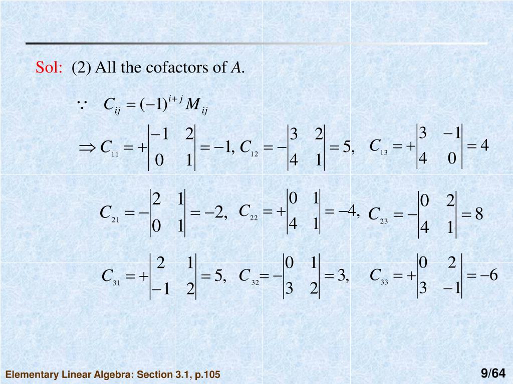 Sol: (2) All the cofactors of A. Elementary Linear Algebra: Section 3.1, p.105