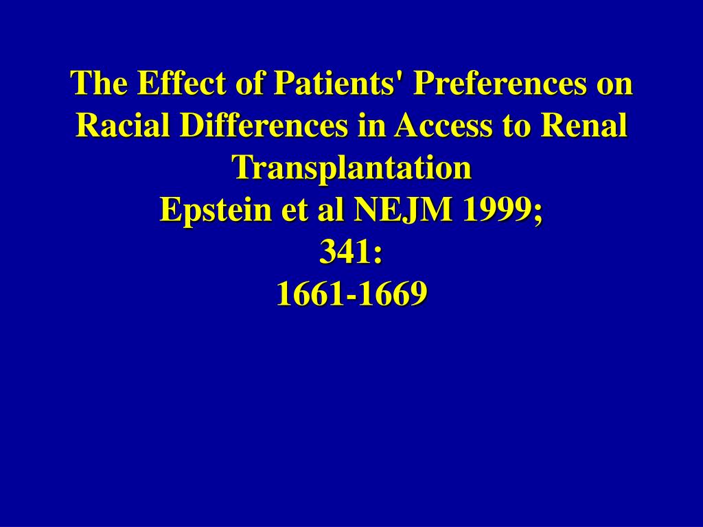 The Effect of Patients' Preferences on Racial Differences in Access to Renal TransplantationEpstein et al NEJM 1999;341:1661-1669