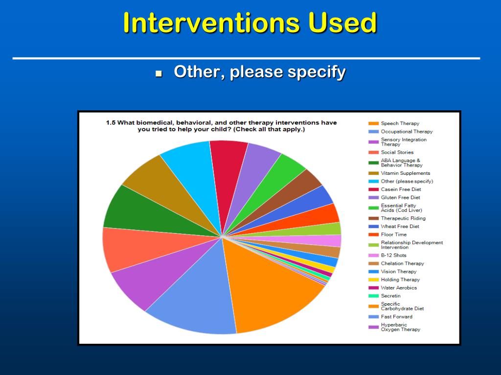Interventions Used Biomedical, behavior, and other therapy interventions are used simultaneously.