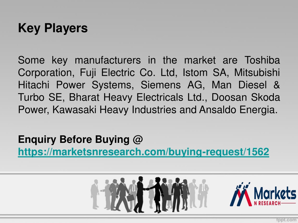 Key Players Some key manufacturers in the market are Toshiba Corporation, Fuji Electric Co. Ltd, Istom SA, Mitsubishi Hitachi Power Systems, Siemens AG, Man Diesel & Turbo SE, Bharat Heavy Electricals Ltd., Doosan Skoda Power, Kawasaki Heavy Industries and Ansaldo Energia. Enquiry Before Buying @ https://marketsnresearch.com/buying-request/1562