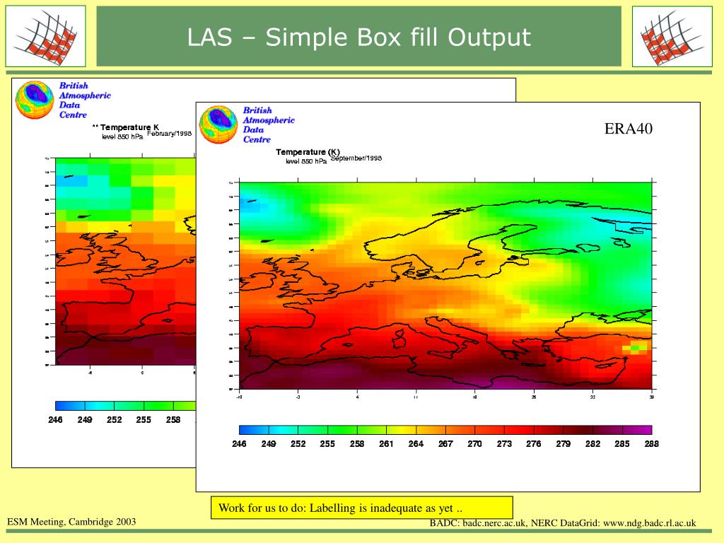 ERA40 LAS – Simple Box fill Output Work for us to do: Labelling is inadequate as yet ..