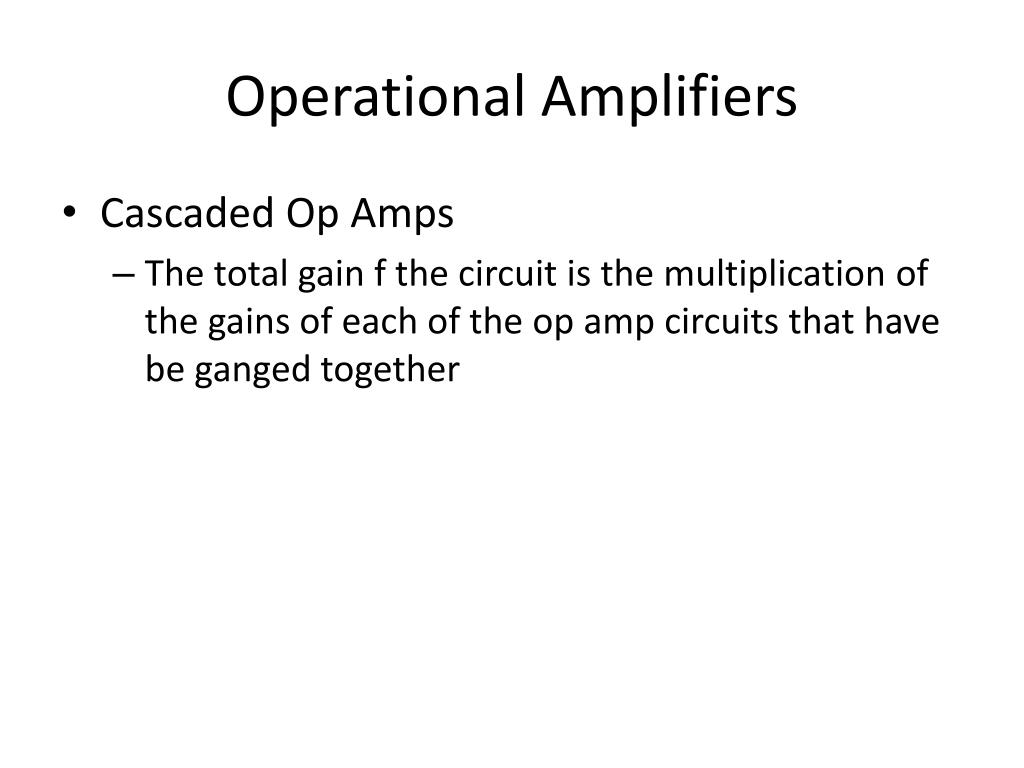 Operational Amplifiers • Cascaded Op Amps • The total gain f the circuit is the multiplication of the gains of each of the op amp circuits that have be ganged together