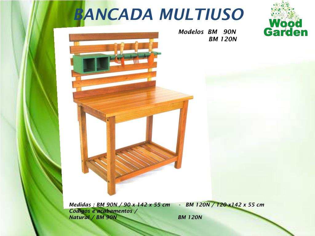 BANCADA MULTIUSO Modelos BM 90N BM 120N Medidas : BM 90N / 90 x 142 x 55 cm - BM 120N / 120 x142 x 55 cm Códigos e acabamentos / Natural / BM 90N BM 120N