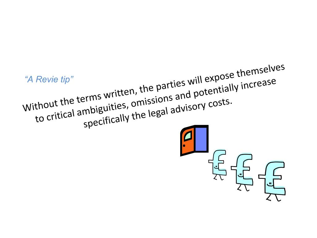 “A Revie tip” Without the terms written, the parties will expose themselves to critical ambiguities, omissions and potentially increase specifically the legal advisory costs.