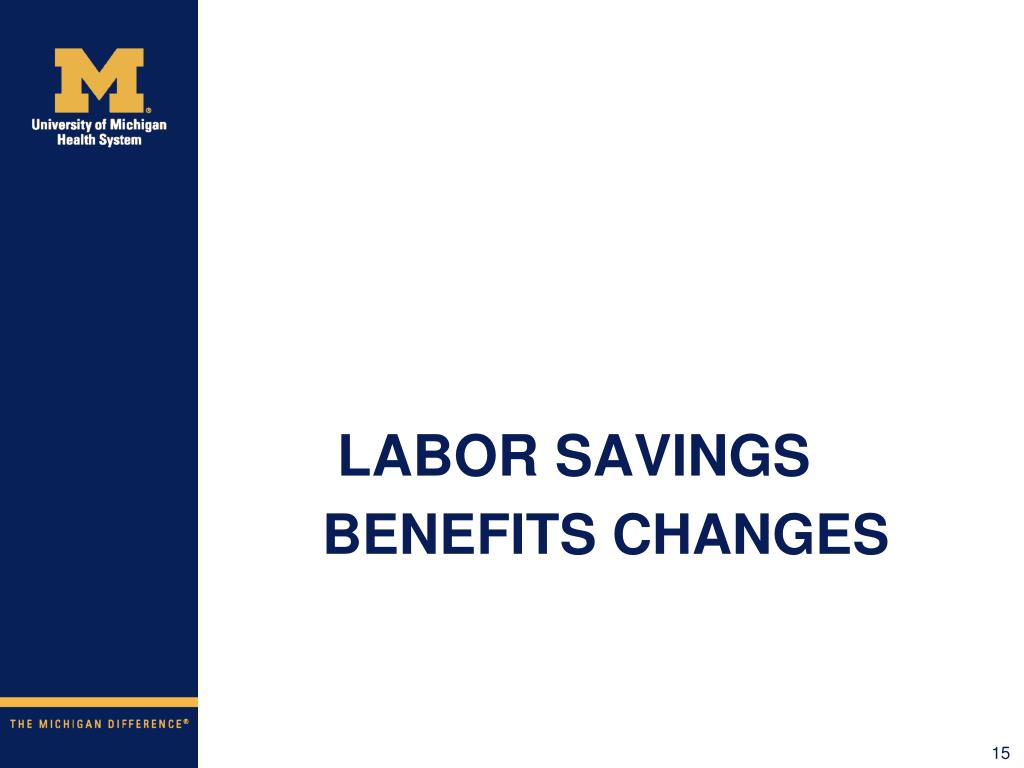 Retirement Savings Plan ChangesEffective date: 1/1/2015 • University-wide change – certain components of salary, in addition to base pay, such as administrative and added duties differentials, one-time lump sum payments, faculty honors, overtime, PTO sell back, and payments for PTO/vacation accrual upon termination will no longer be eligible for retirement savings plan contributions. • Applies to current and future faculty and non-bargained for staff of the University. • Saves the University $4.4M annually ($2M of this UMHS) • Retains the University’s competitive position relative to 23 Provost peer academic institutions at an overall Benefit Index of 100. • No change to Retiree Health Benefits at this time. Scheduled for review again in 2016