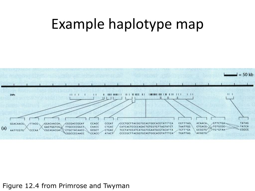 Example haplotype map Figure 12.4 from Primrose and Twyman