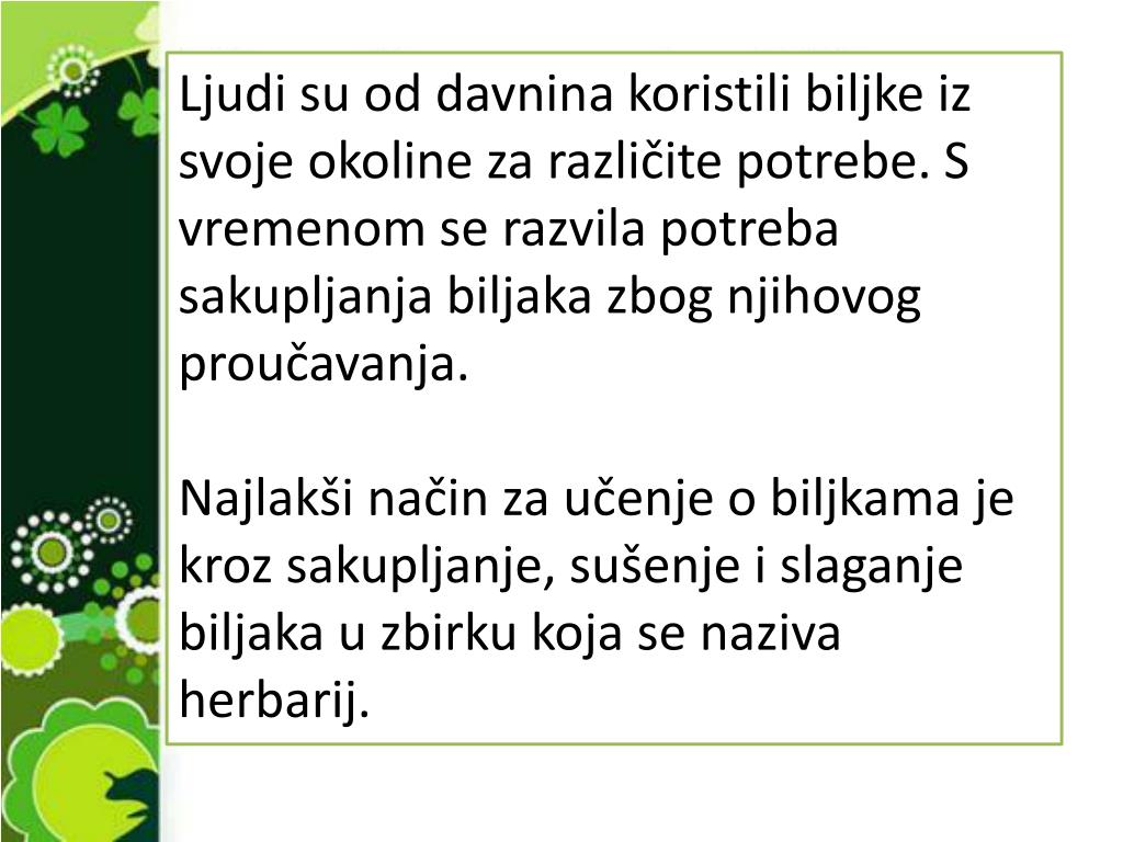 Herbarij Mladi čuvari prirode. Ljudi su od davnina koristili biljke iz svoje okoline za različite potrebe. S vremenom se razvila potreba sakupljanja biljaka zbog njihovog proučavanja.