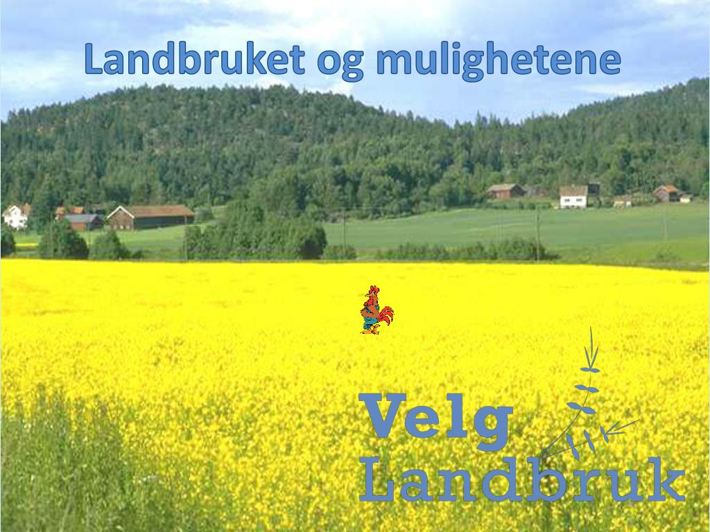 Betyr landbruket noe? • Hver tiende bedrift i Norge er en landbruksbedrift • Landbruks- og matindustrien sysselsetter 45.000 mennesker • Matindustrien er landets største industrisektor • I tillegg til å produsere mat leverer landbruket både miljøvennlig energi, landskapspleie, helse- sosial- og utdanningstjenester, aktiviteter og tilbud om overnatting og servering