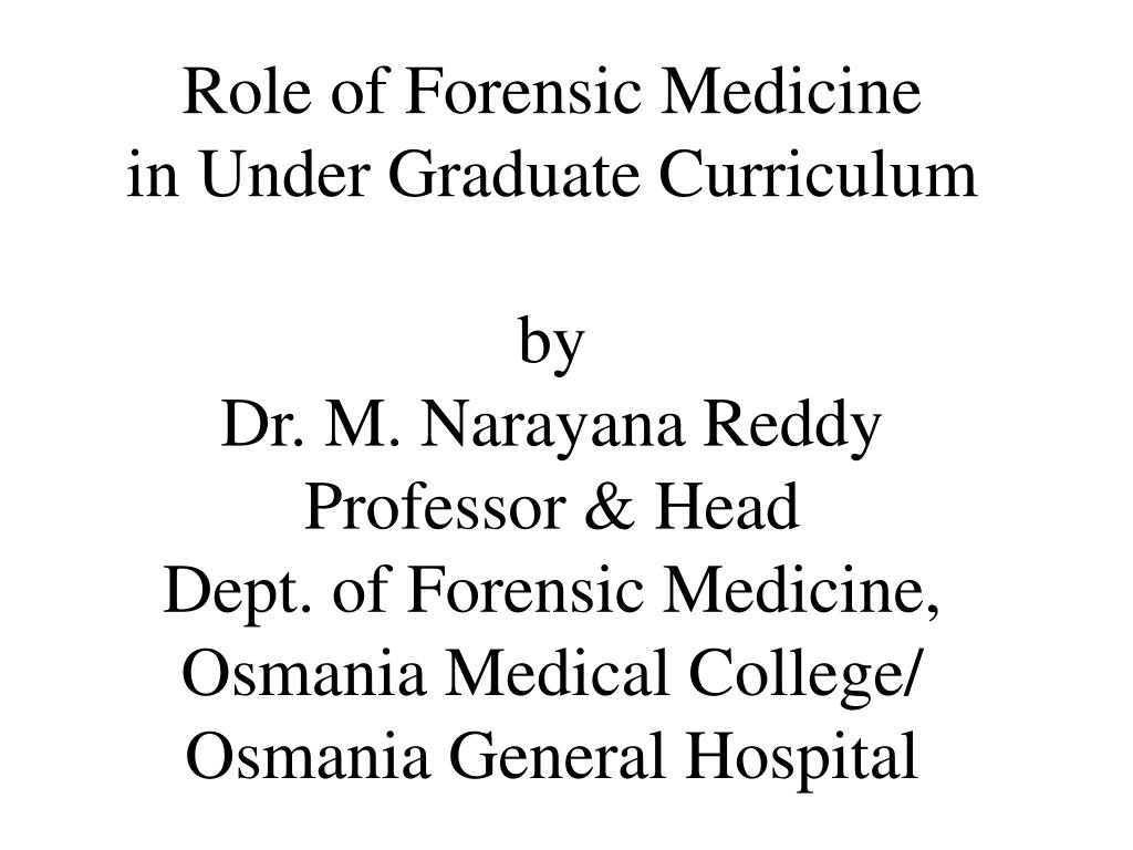 Role of Forensic Medicine in Under Graduate CurriculumbyDr. M. Narayana ReddyProfessor & HeadDept. of Forensic Medicine,Osmania Medical College/Osmania General Hospital