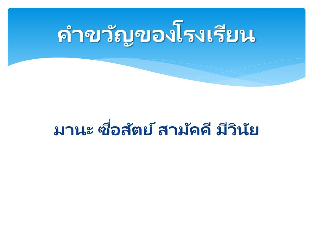 คำขวัญของโรงเรียน มานะ ซื่อสัตย์ สามัคคี มีวินัย
