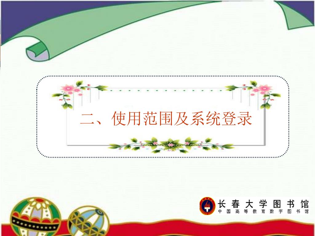 读者使用范围 长春大学校园网内网络用户,采用IP认证方式,免费使用。