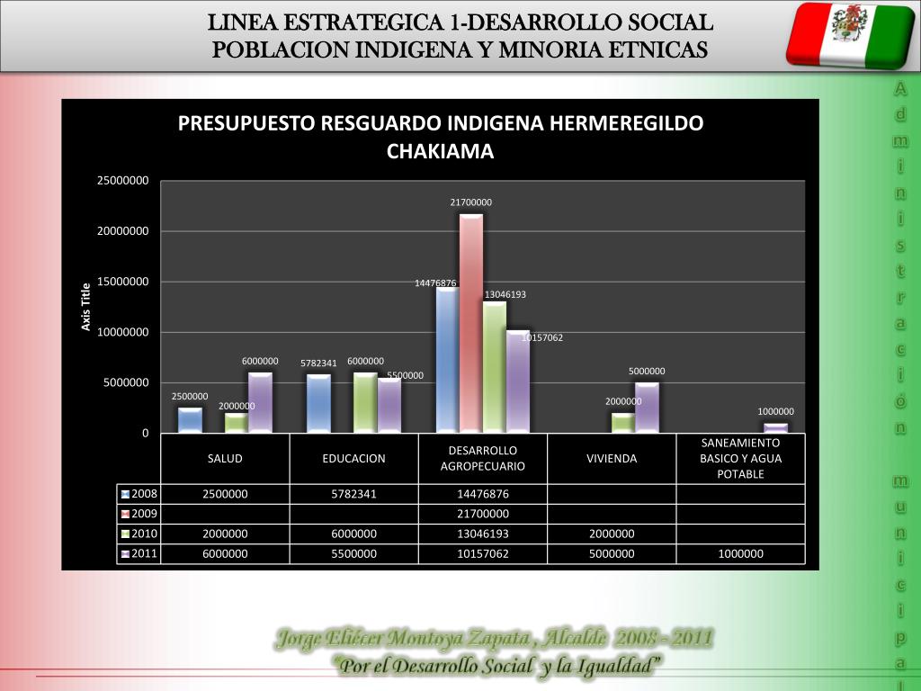 LINEA ESTRATEGICA 1-DESARROLLO SOCIAL POBLACION INDIGENA Y MINORIA ETNICAS Administración municipal PLAN DE DESARROLLO DEPARTAMENTAL LINEA 1 DESARROLLO POLÍTICO Jorge Eliécer Montoya Zapata , Alcalde 2008 - 2011 “Por el Desarrollo Social y la Igualdad”